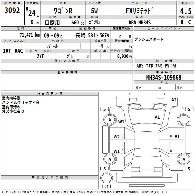 Suzuki WAGON R с аукциона Японии TAA Kyushu лот № 3092
