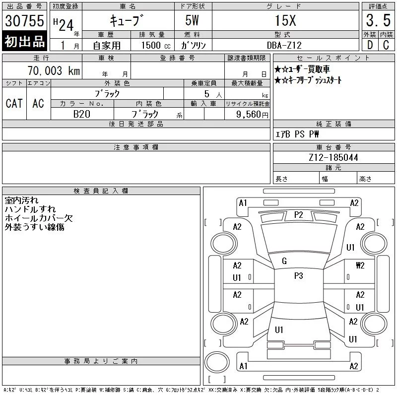 Nissan CUBE с аукциона Японии CAA Tokyo лот № 30755