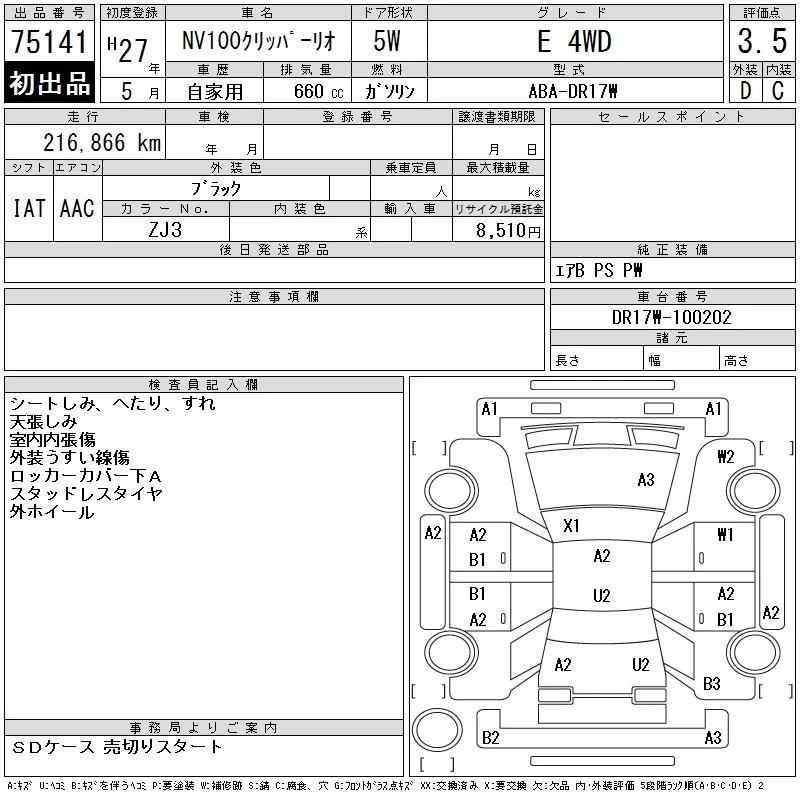 Nissan CLIPPER RIO с аукциона Японии CAA Gifu лот № 75141