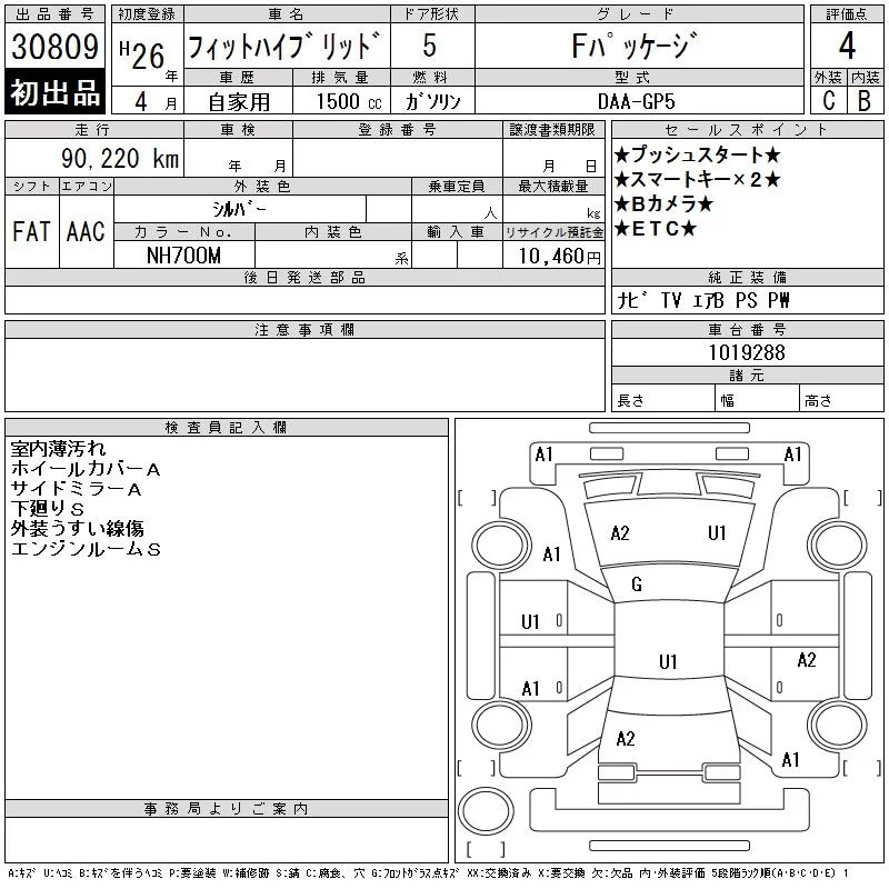 Honda FIT с аукциона Японии CAA Tokyo лот № 30809