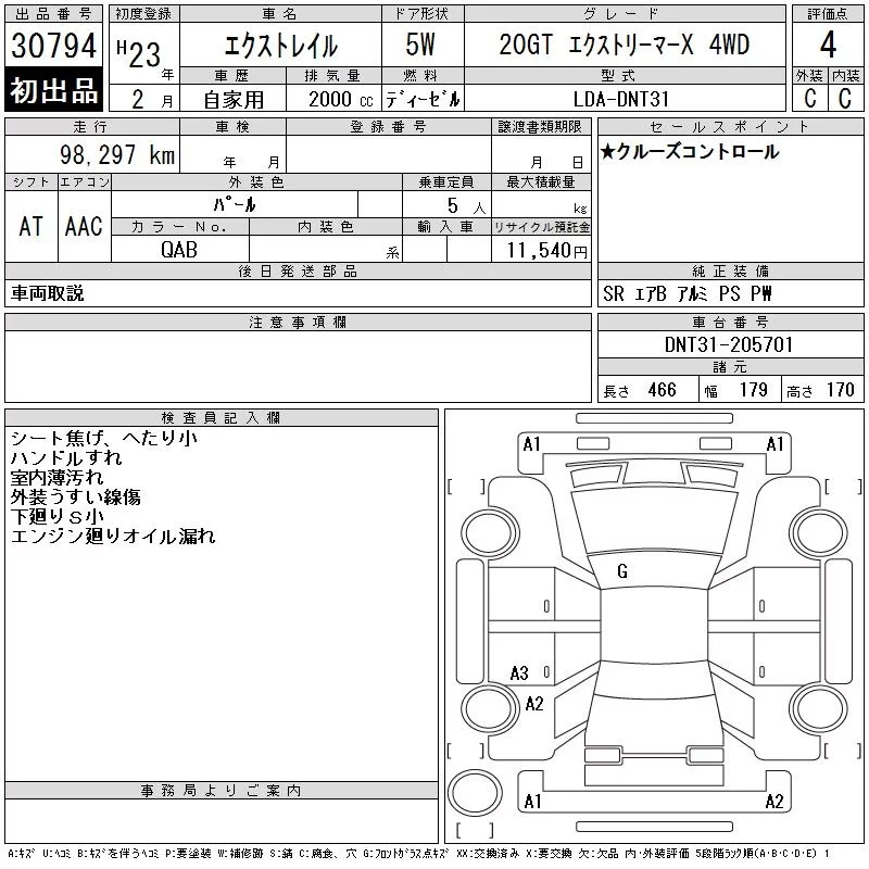 Nissan X-TRAIL с аукциона Японии CAA Tokyo лот № 30794