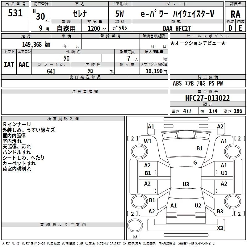 Nissan SERENA с аукциона Японии TAA Kyushu лот № 531