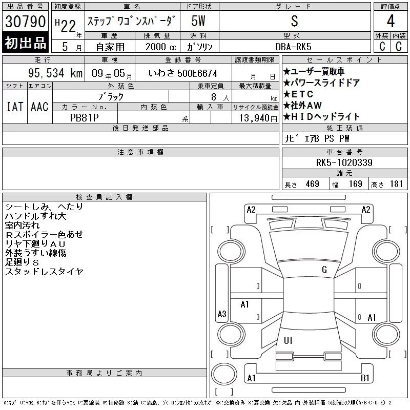 Honda STEP WAGON с аукциона Японии CAA Tokyo лот № 30790
