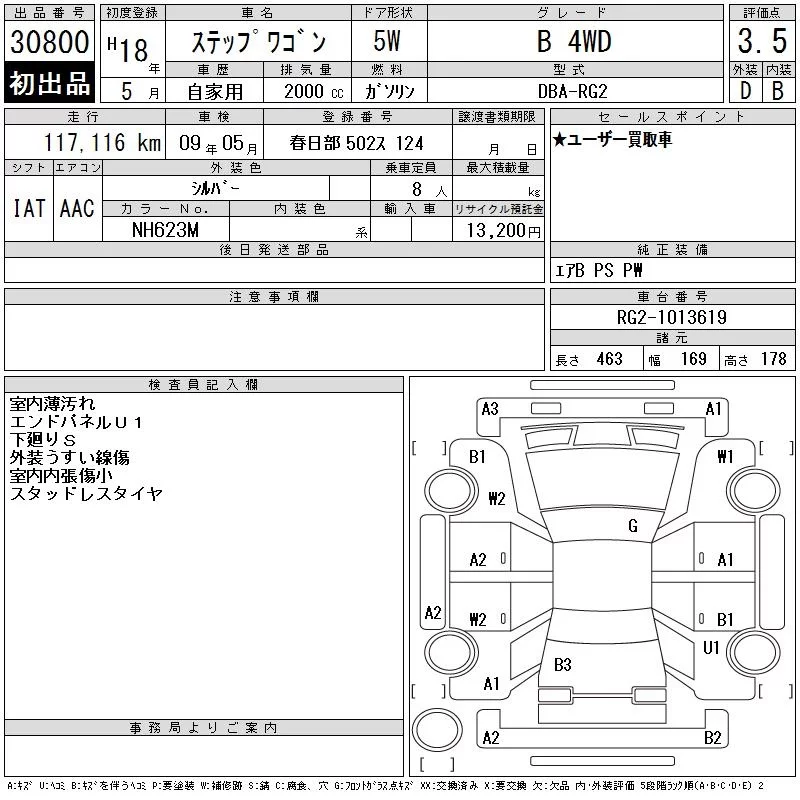 Honda STEP WAGON с аукциона Японии CAA Tokyo лот № 30800