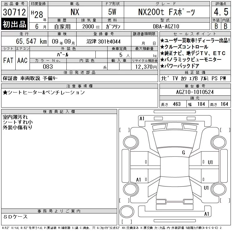 Lexus NX с аукциона Японии CAA Tokyo лот № 30712