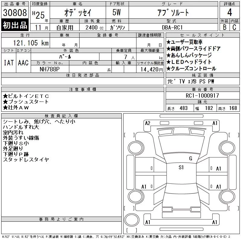 Honda ODYSSEY с аукциона Японии CAA Tokyo лот № 30808