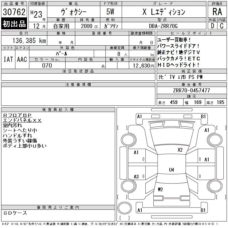 Toyota VOXY с аукциона Японии CAA Tokyo лот № 30762
