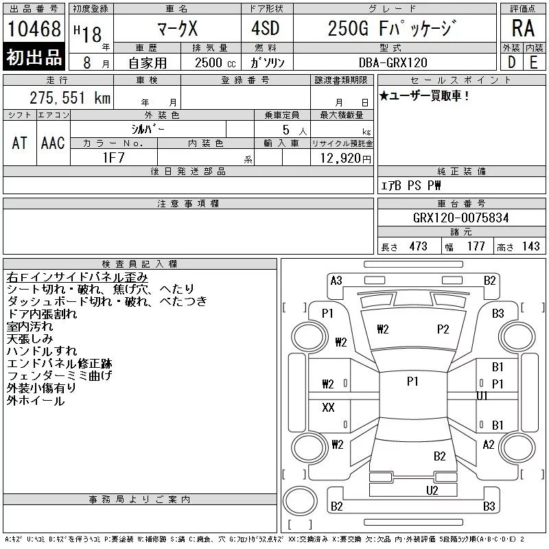 Toyota MARK X с аукциона Японии CAA Tokyo лот № 10468