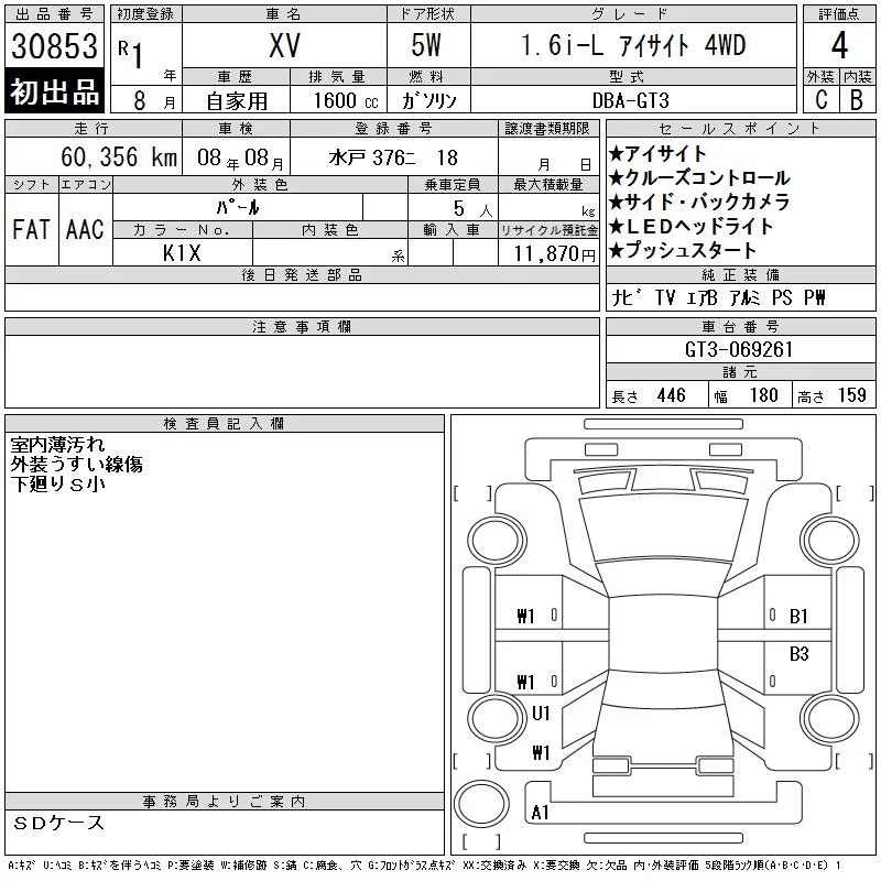 Subaru XV с аукциона Японии CAA Tokyo лот № 30853