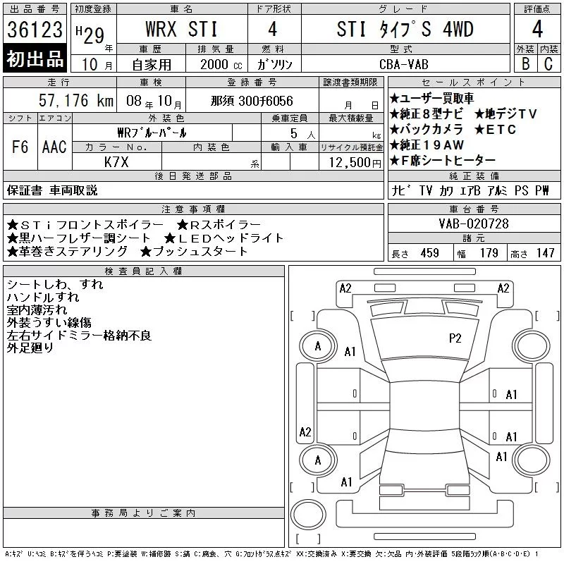 Subaru WRX с аукциона Японии CAA Tokyo лот № 36123