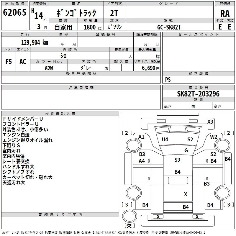 Mazda BONGO с аукциона Японии TAA Kyushu лот № 62065