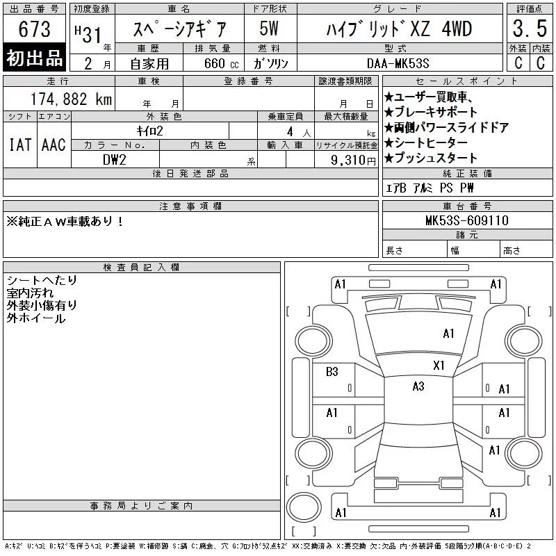 Suzuki SPACIA GEAR с аукциона Японии CAA Tokyo лот № 673