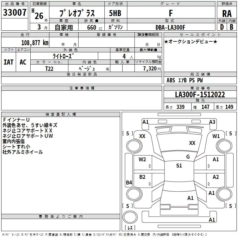 Subaru PLEO PLUS с аукциона Японии TAA Kyushu лот № 33007