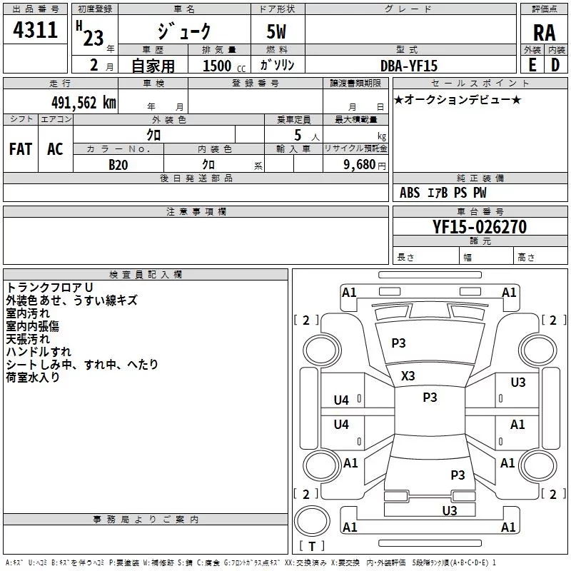 Nissan JUKE с аукциона Японии TAA Kyushu лот № 4311