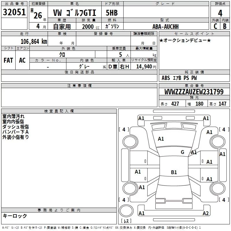 Volkswagen GOLF с аукциона Японии TAA Kyushu лот № 32051