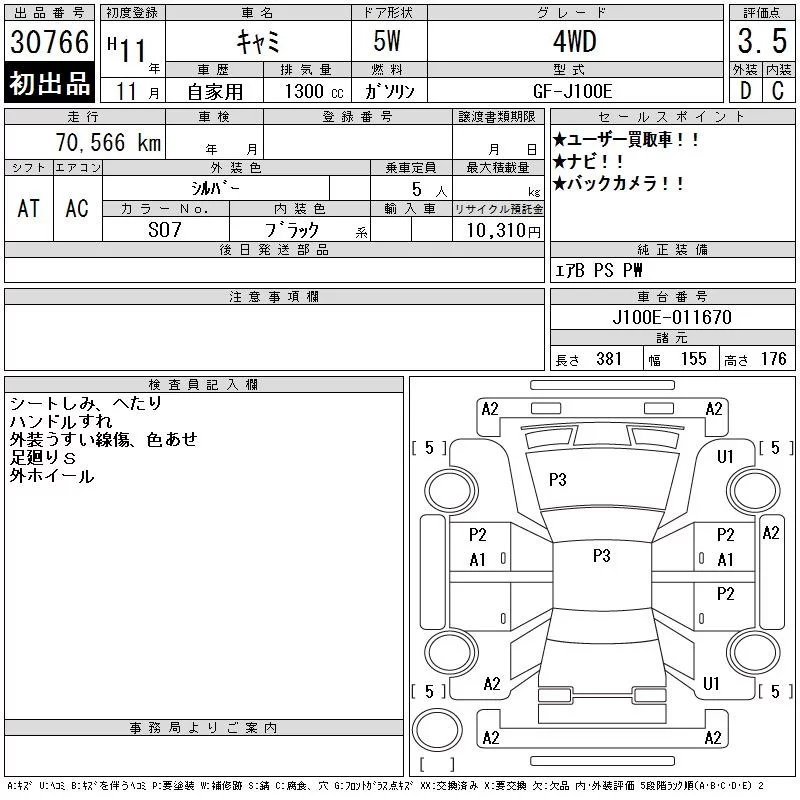 Toyota CAMI с аукциона Японии CAA Tokyo лот № 30766