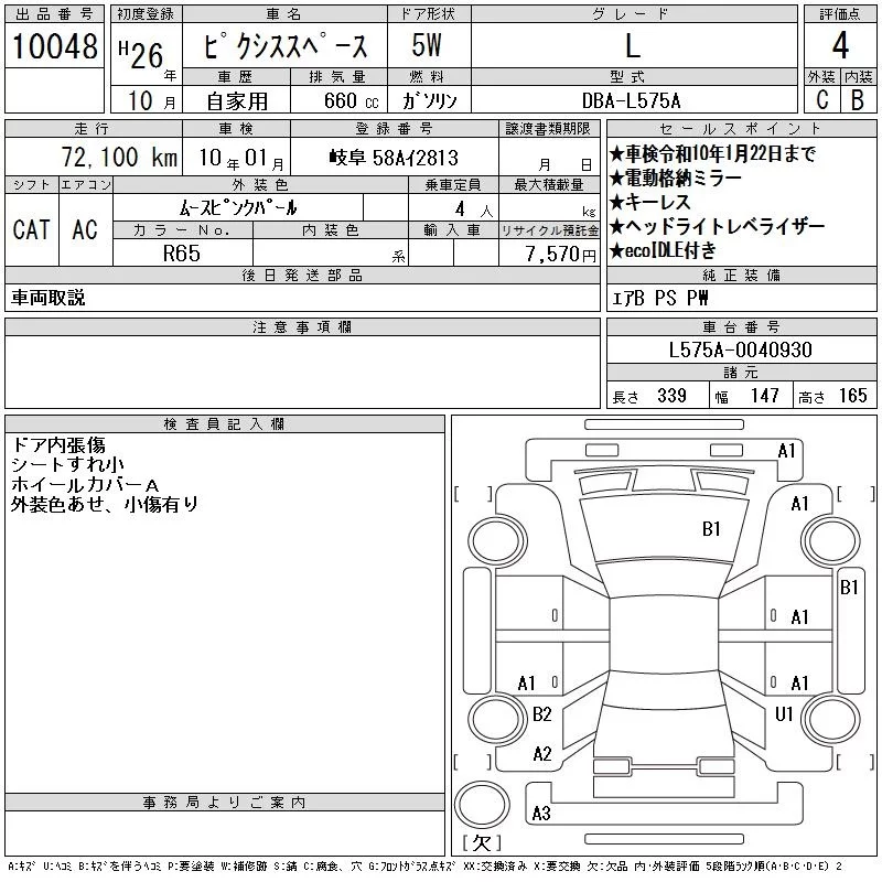 Toyota PIXIS SPACE с аукциона Японии CAA Gifu лот № 10048
