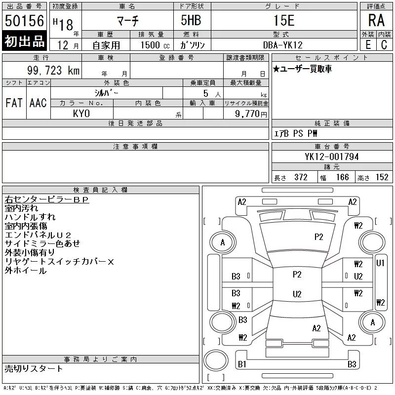 Nissan MARCH с аукциона Японии CAA Tokyo лот № 50156