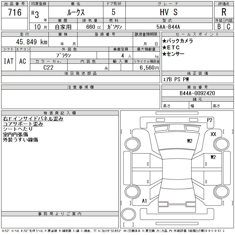 Nissan ROOX с аукциона Японии CAA Tokyo лот № 716