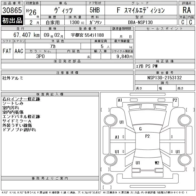 Toyota VITZ с аукциона Японии CAA Tokyo лот № 30865