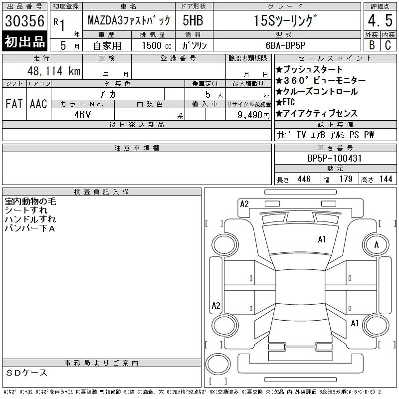 Mazda MAZDA3 с аукциона Японии CAA Gifu лот № 30356