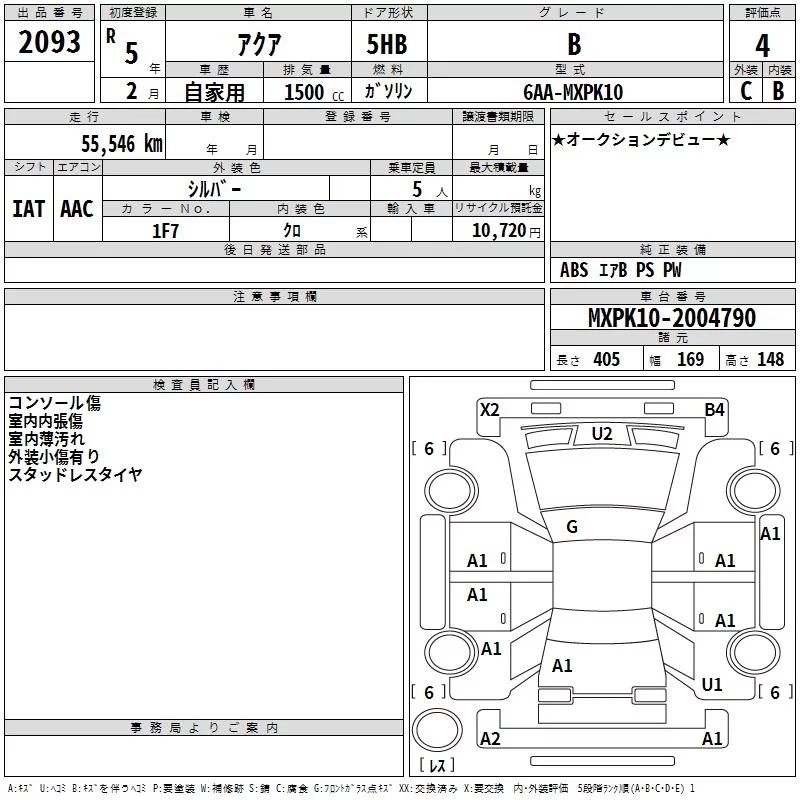 Toyota AQUA с аукциона Японии TAA Hiroshima лот № 2093