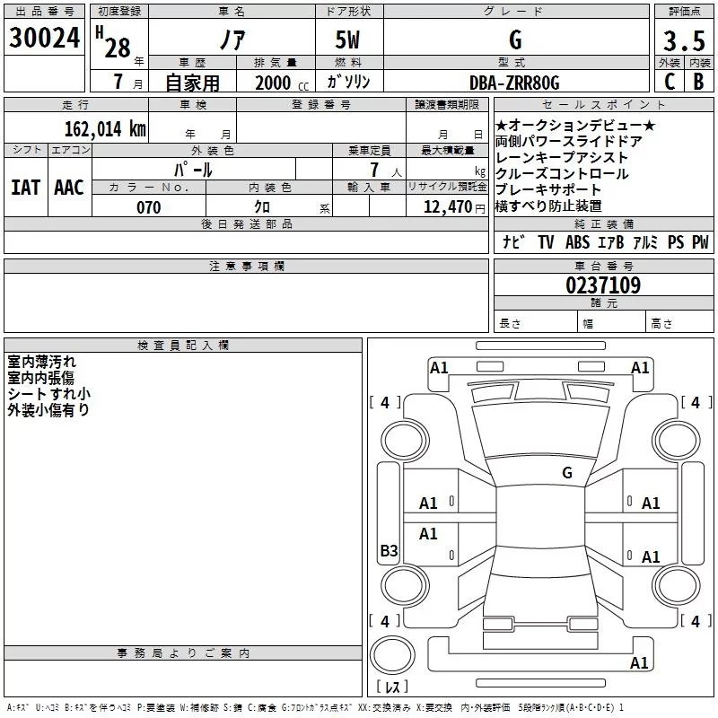 Toyota NOAH с аукциона Японии TAA Hiroshima лот № 30024
