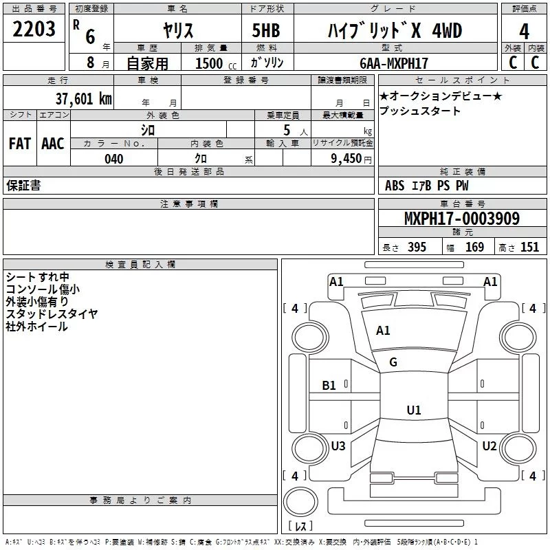 Toyota YARIS с аукциона Японии TAA Hiroshima лот № 2203
