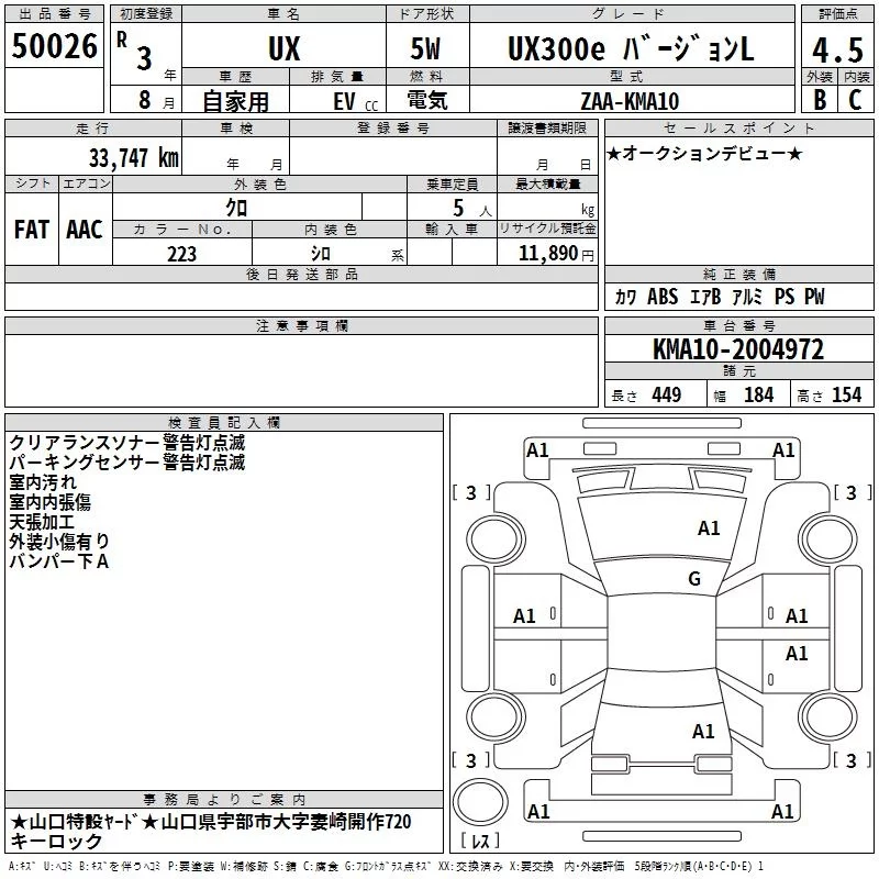 Lexus UX с аукциона Японии TAA Hiroshima лот № 50026