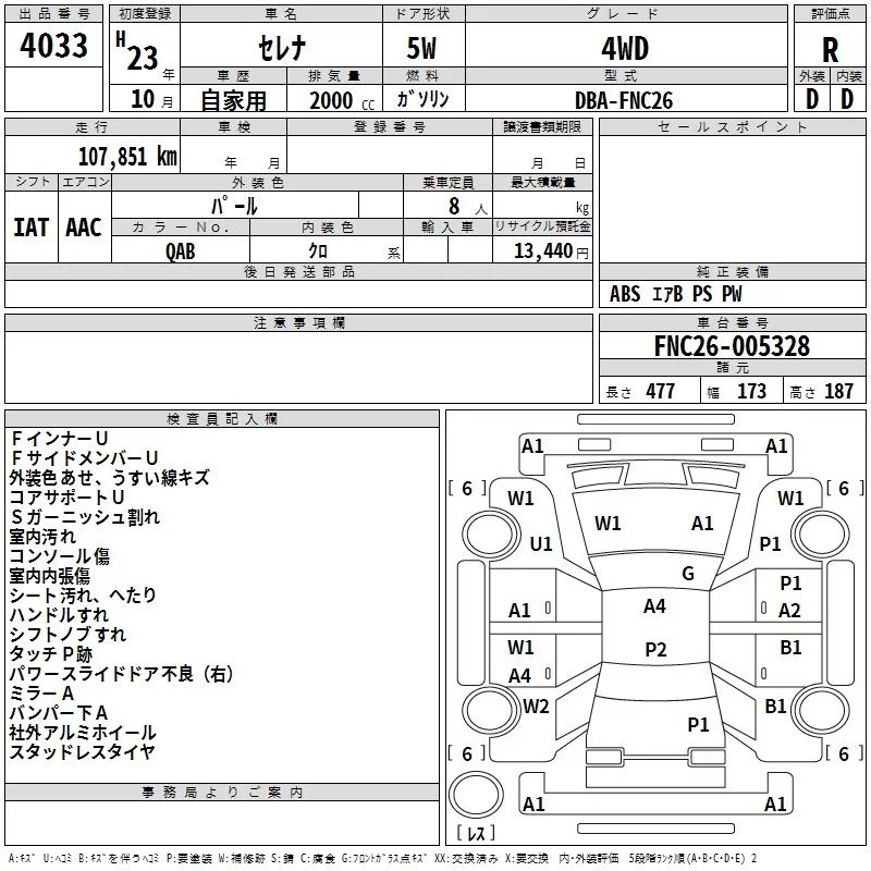 Nissan SERENA с аукциона Японии TAA Hiroshima лот № 4033
