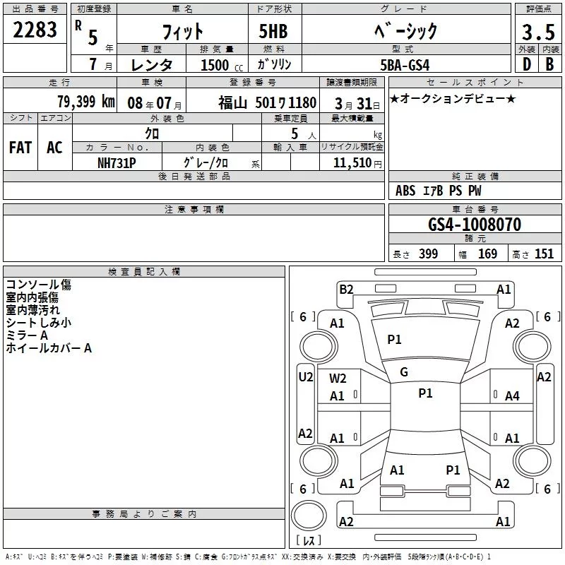 Honda FIT с аукциона Японии TAA Hiroshima лот № 2283