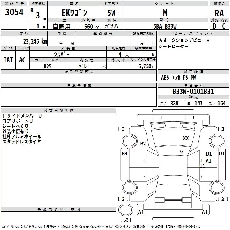 Mitsubishi EK WAGON с аукциона Японии TAA Hiroshima лот № 3054