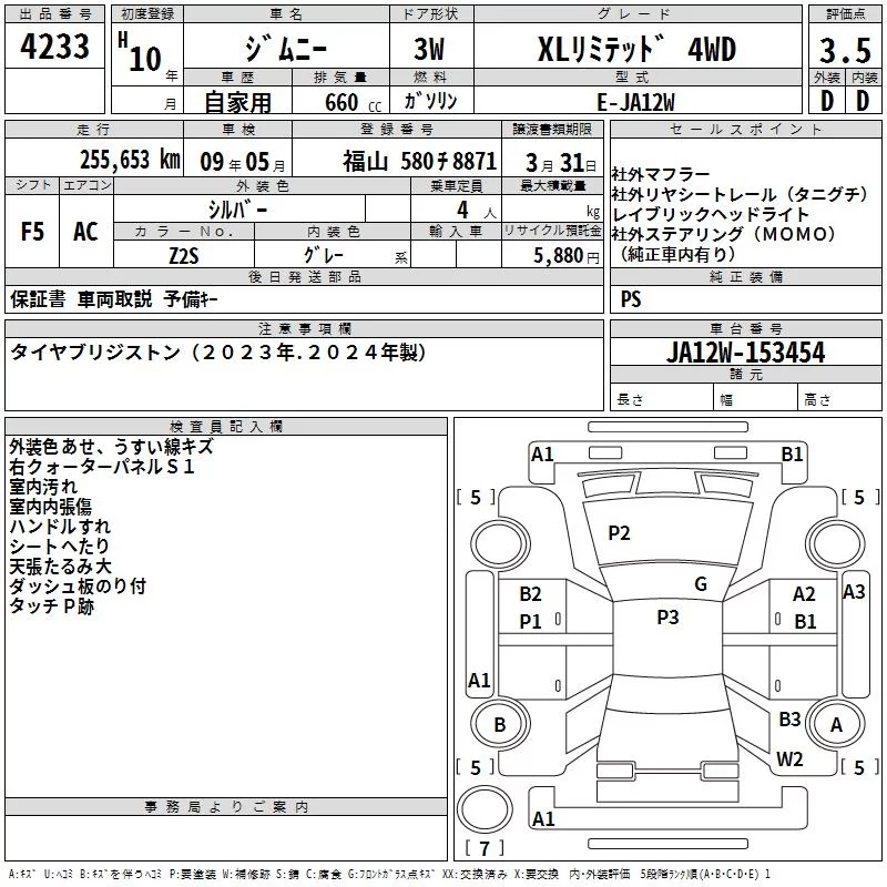 Suzuki JIMNY с аукциона Японии TAA Hiroshima лот № 4233