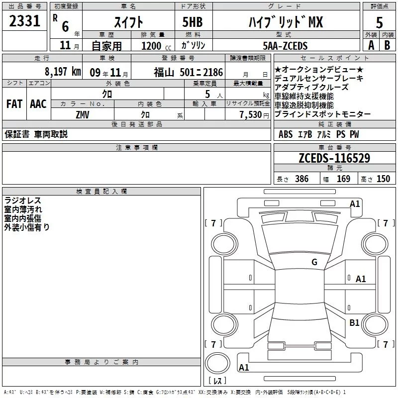 Suzuki SWIFT с аукциона Японии TAA Hiroshima лот № 2331