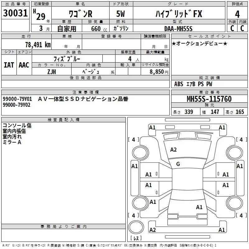 Suzuki WAGON R с аукциона Японии TAA Hiroshima лот № 30031