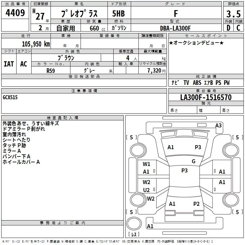 Subaru PLEO PLUS с аукциона Японии TAA Hiroshima лот № 4409