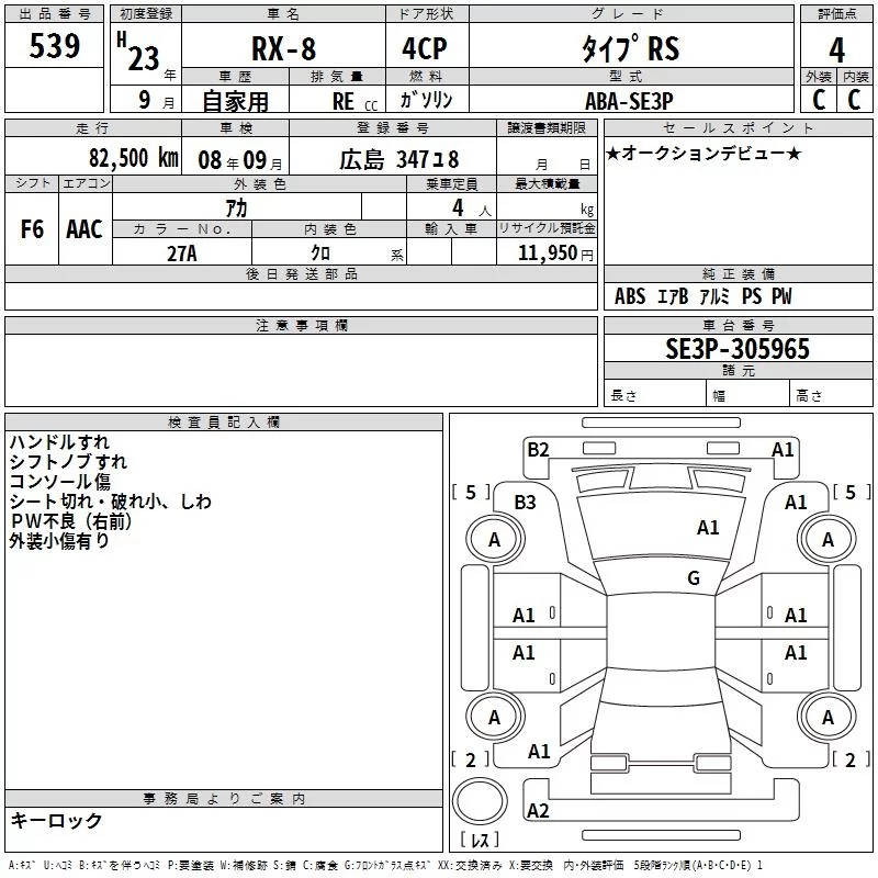 Mazda RX-8 с аукциона Японии TAA Hiroshima лот № 539