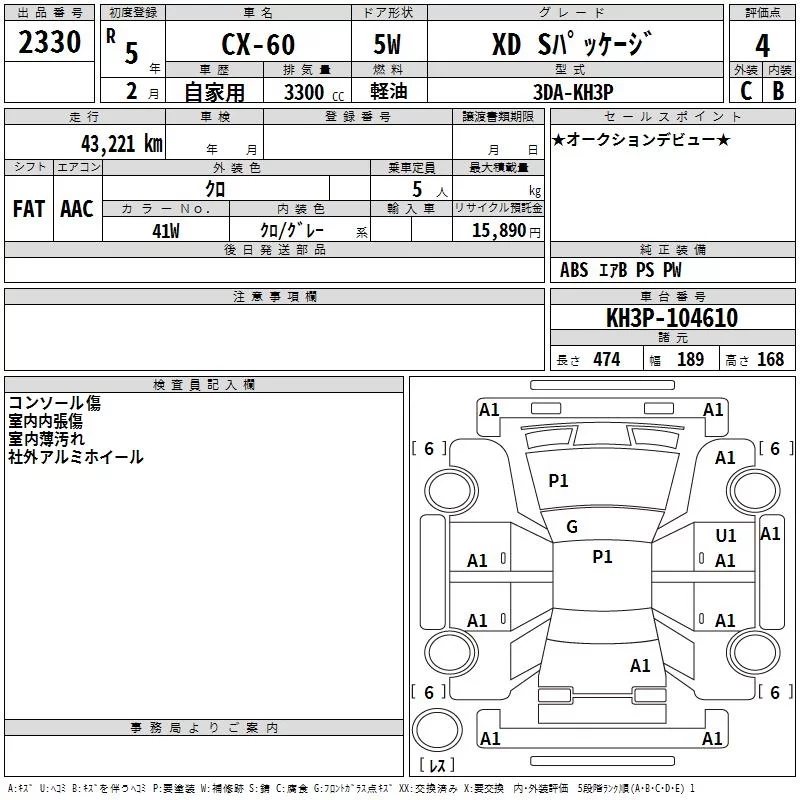 Mazda CX-60 с аукциона Японии TAA Hiroshima лот № 2330