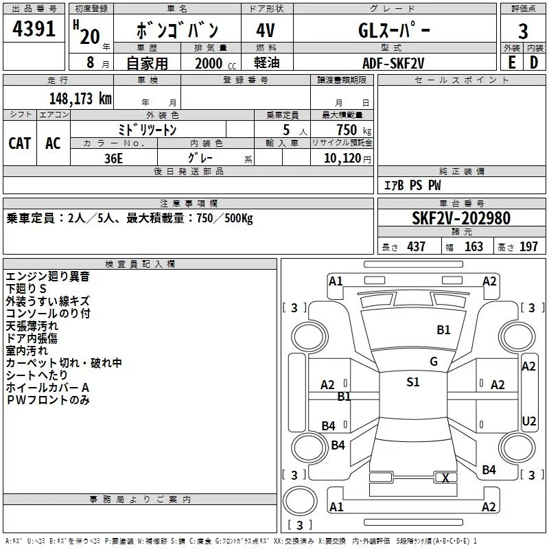 Mazda BONGO VAN с аукциона Японии TAA Hiroshima лот № 4391