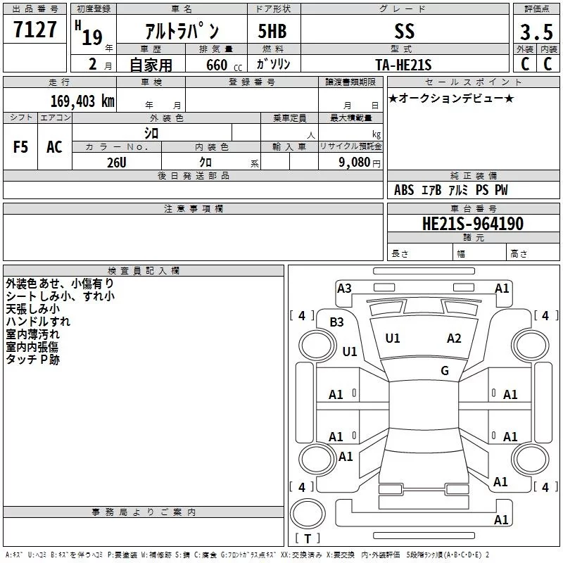 Suzuki ALTO LAPIN с аукциона Японии TAA Hiroshima лот № 7127