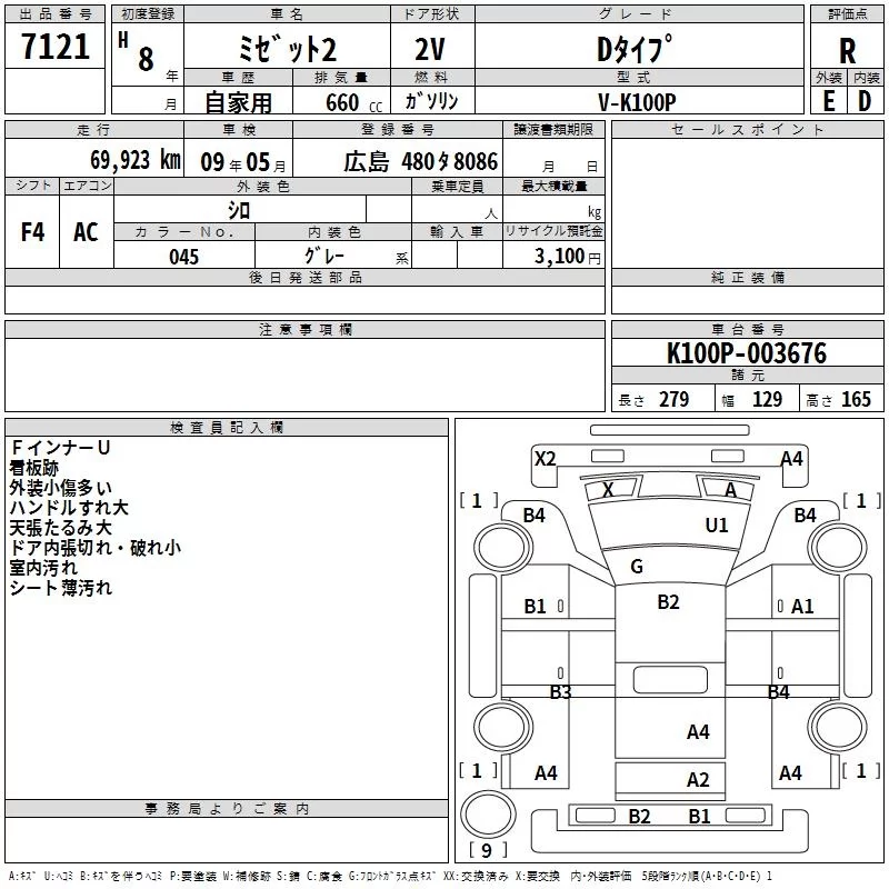 Daihatsu MIDJET II с аукциона Японии TAA Hiroshima лот № 7121