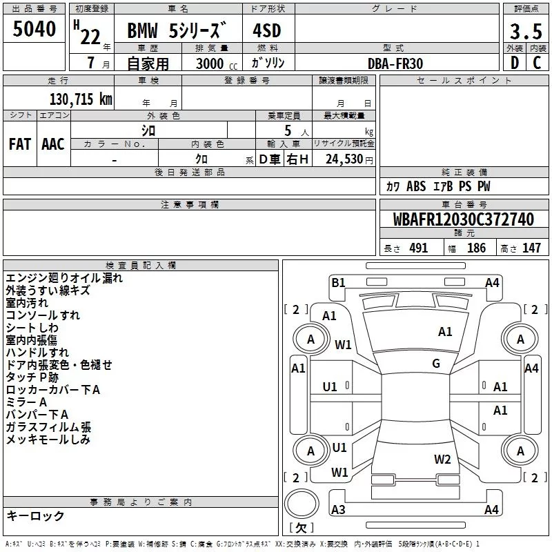 BMW 5-Series с аукциона Японии TAA Hiroshima лот № 5040