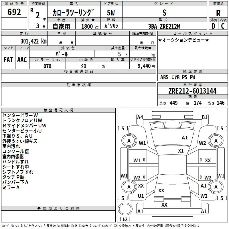 Toyota COROLLA TOURING с аукциона Японии TAA Hiroshima лот № 692