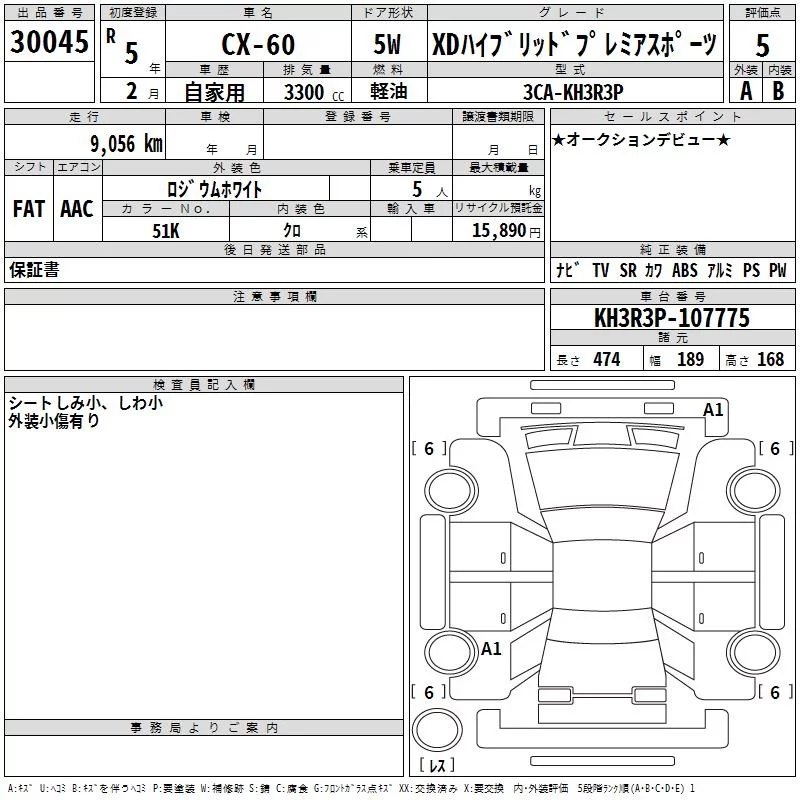 Mazda CX-60 с аукциона Японии TAA Hiroshima лот № 30045