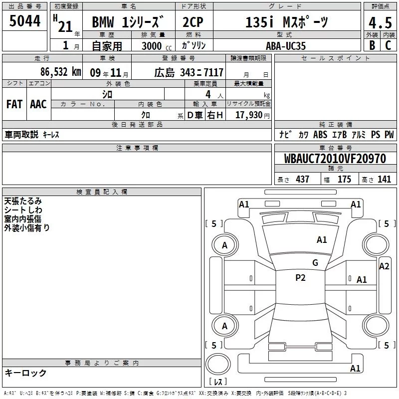 BMW 1-Series с аукциона Японии TAA Hiroshima лот № 5044