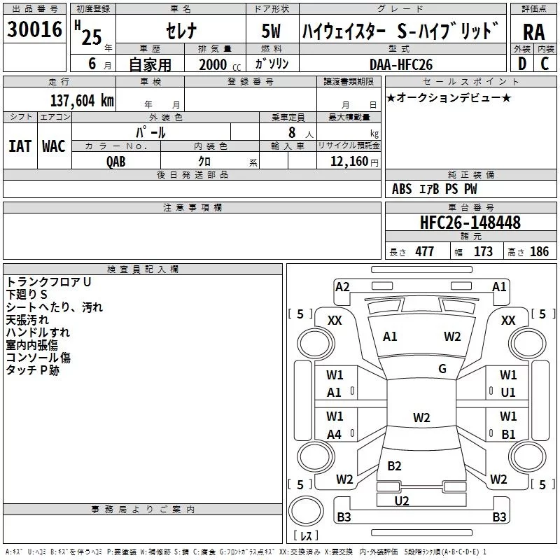 Nissan SERENA с аукциона Японии TAA Minami Kyushu лот № 30016