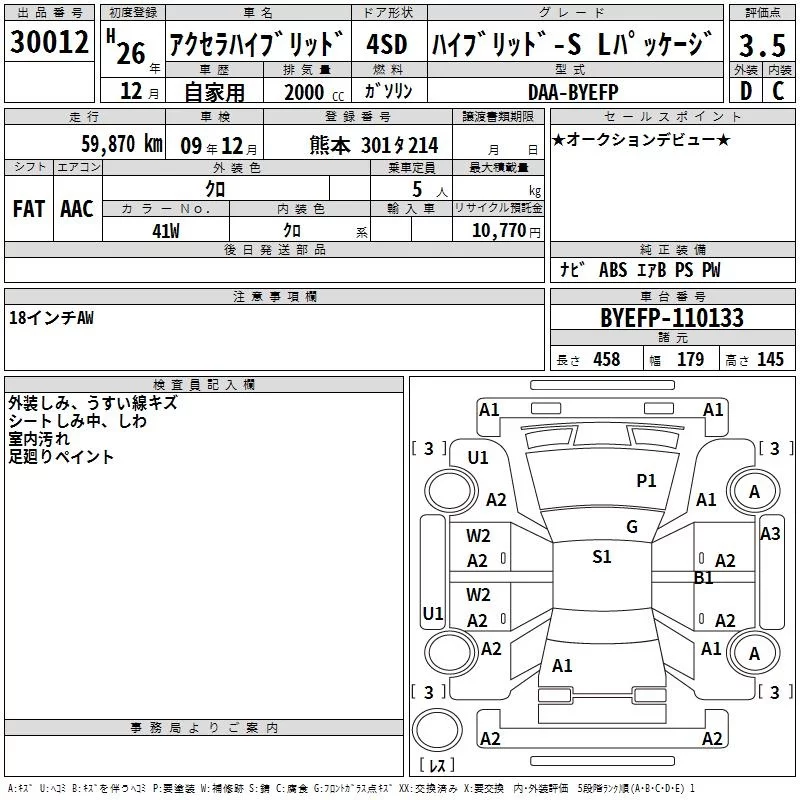 Mazda AXELA с аукциона Японии TAA Minami Kyushu лот № 30012