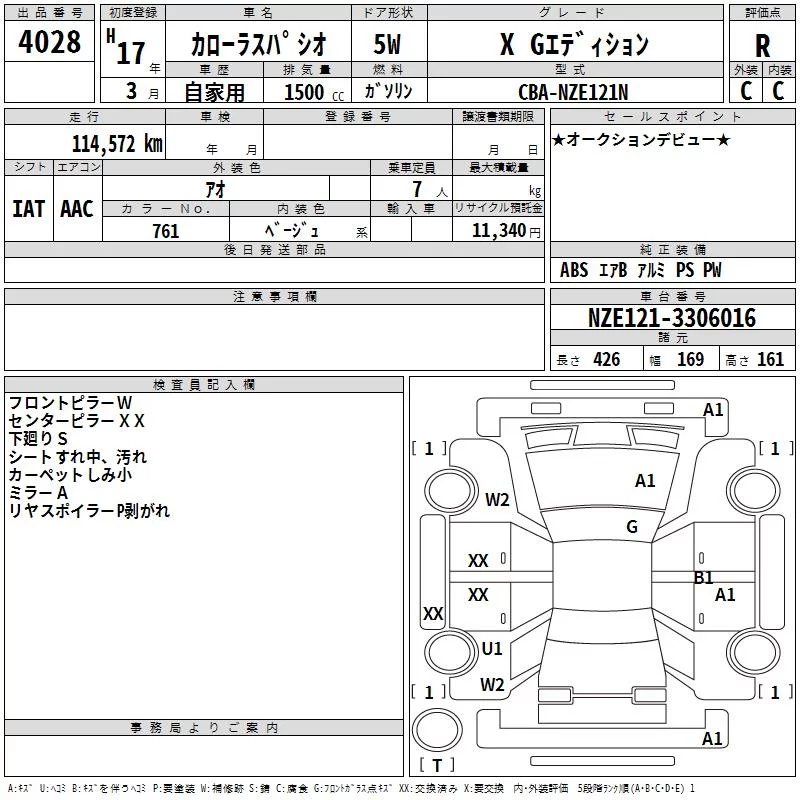 Toyota COROLLA SPACIO с аукциона Японии TAA Minami Kyushu лот № 4028