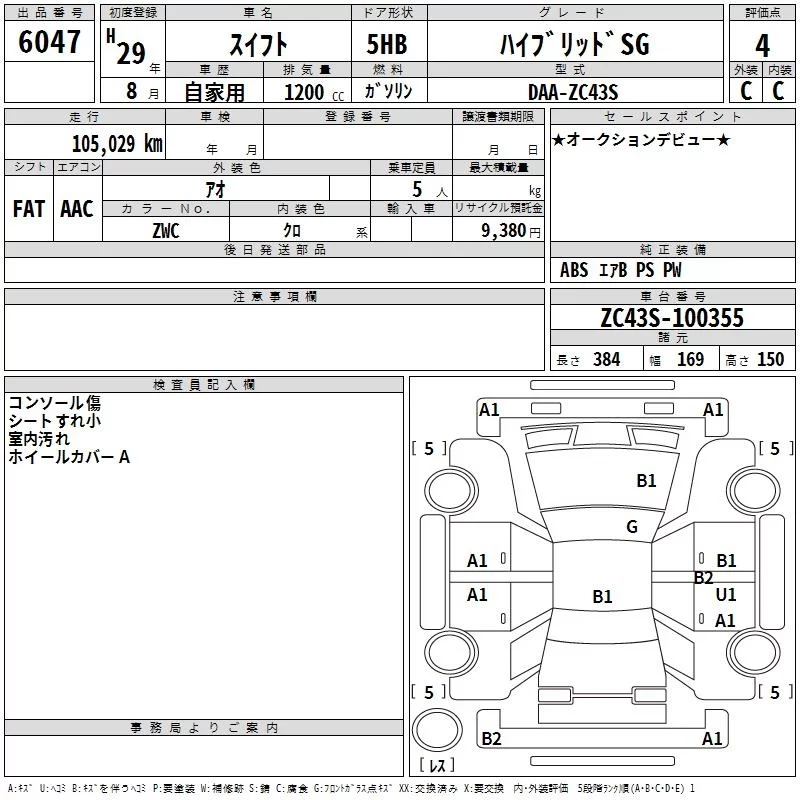 Suzuki SWIFT с аукциона Японии TAA Minami Kyushu лот № 6047