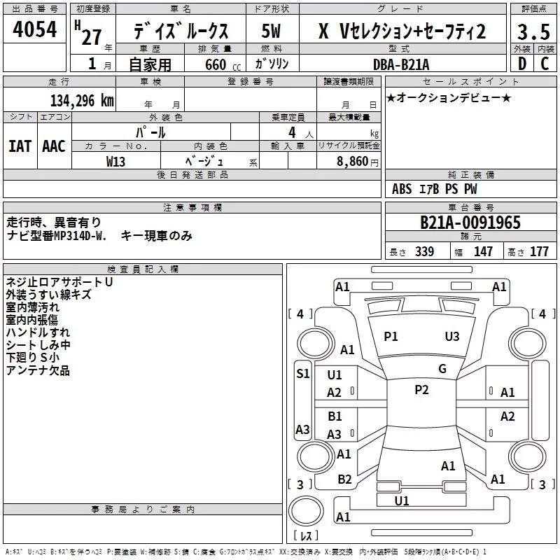 Nissan DAYZ ROOX с аукциона Японии TAA Minami Kyushu лот № 4054